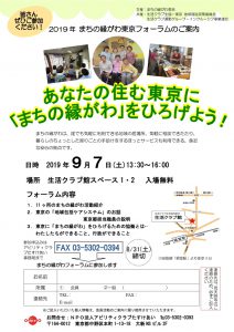 11箇所になった全まちの縁がわの活動紹介、東京都職員による地域包括ケアシステムのお話、パネルディスカッションを行います。