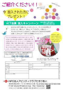 (終了しました)ACT会員加入キャンペーンのおしらせ(2019/11/15~2020/3/31)