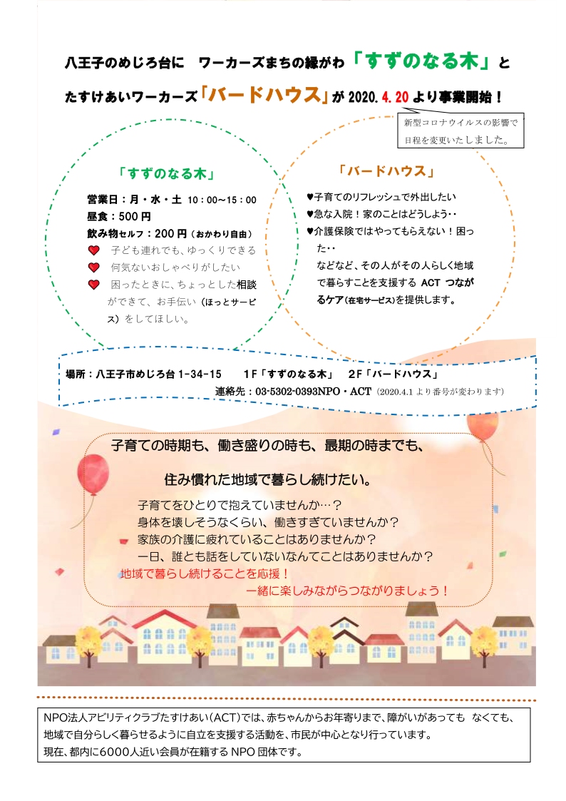 ③新型コロナウイルスの影響を考慮し、「すずのなる木」の営業は、4月20日(月)よりスタートします。